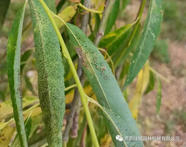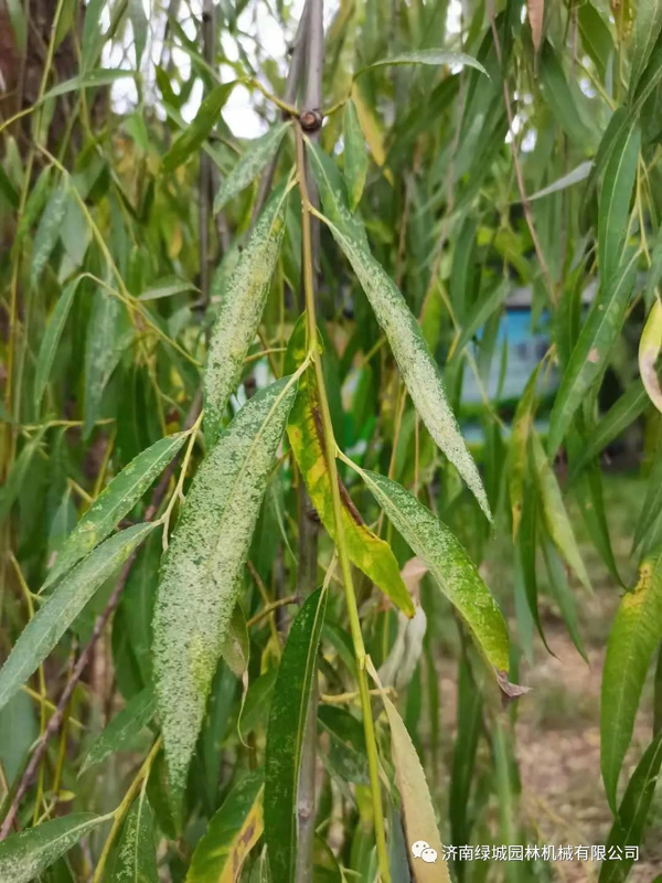 3、4-10月份期间,发现柳树叶片发白时,及时检查叶片背面是否有很多黑点或网蝽出现,及时喷雾贝翠+德克特+八方尚猛或金迪乐600-800倍。