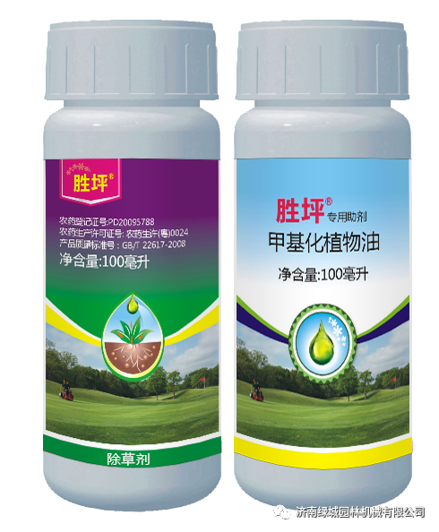 2、禾本科杂草:胜坪套装一套兑水30千克,喷施一亩地,防治大部分一年生禾本科杂草。如果有抗性马唐草,可以加入八方悍马,33ml胜坪+2袋八方悍马兑水15千克,喷施220-330平方米。