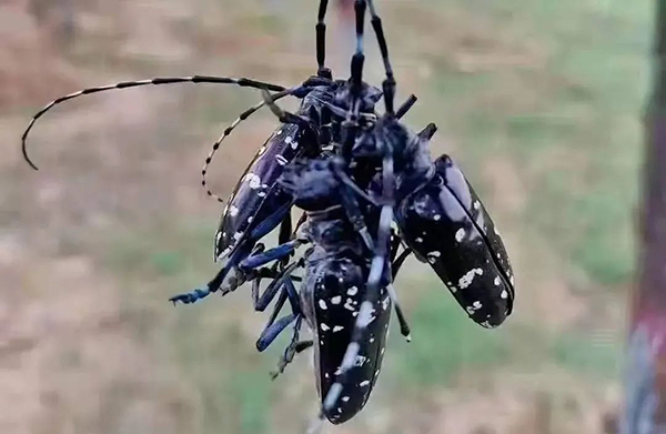 3、5-8月主要成虫危害期:5月中旬喷一次攻牛,7月初喷一次攻牛,整体喷雾。时间节点可以提前或推迟,根据所在地区虫害发生时间灵活掌握。吉丁虫可以用溴氰菊酯、冠呀等喷雾。攻牛持效期长,可达40-60天。
