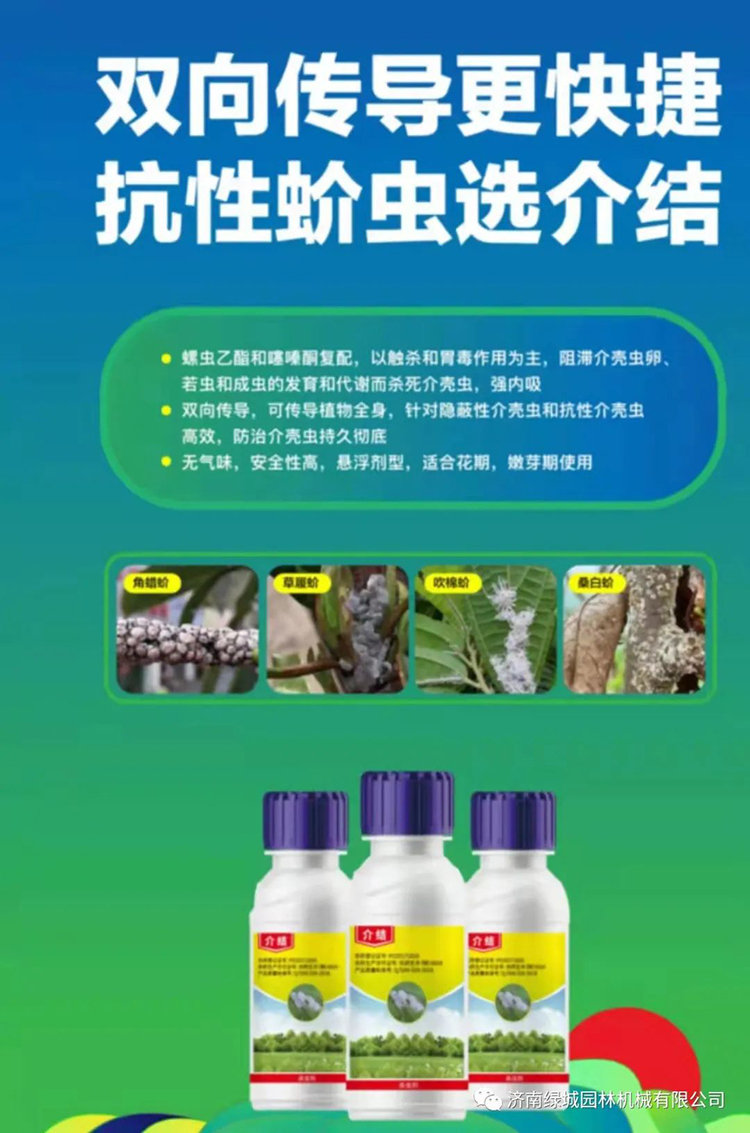 全年防治方案:秋季清园,树木涂白,喷施石硫合剂一次,早春未萌芽前喷施一次石硫合剂。在蚧壳虫容易发生的植物上,5月喷施一次终介、介结。后期蚧壳形成后,使用透翠+介结喷雾2-3次,也可防治住。草履蚧做好春季3月份阻止上树,用粘虫胶带缠绕树干,集中消灭。