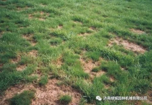 3、草坪受到褐斑病、枯萎病、斑枯病、药害等影响,导致斑秃或成片死亡。