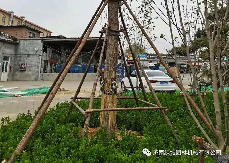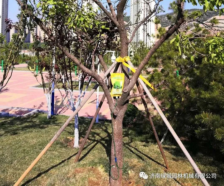 (2)做好树木固定支撑,如果秋季移栽,还要做好冬季防护。