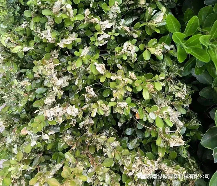9、另外还有黄杨绢野螟、美国白蛾等食叶类害虫危害,可以使用园功、一刀流等喷雾防治。