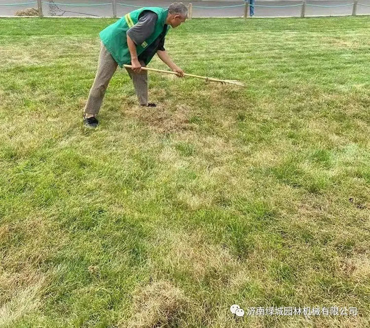 4、土壤问题怎么办,这也是很多朋友想去改良,但是又没办法的事。每年春秋打孔一次,梳草一次,施肥一次,使用疏松剂1次,可以保持土壤透气性好,长势健壮,提高抗旱抗涝,提高抗逆性,这样虽然看着多花了人工和机器油耗,实际上能省的远不止这一点。所以草坪养护好的关键就是学会土壤管理。