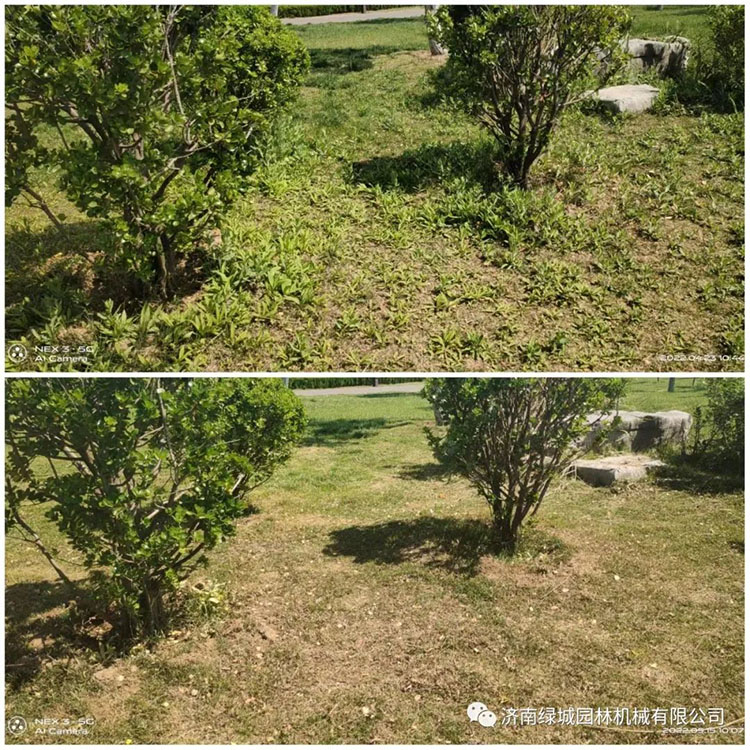 3、修剪:按照三分之一原则。大部分草坪修剪都比较迟缓,所以高度一定要保持在8-10厘米以上,过低修剪也是草坪退化枯黄甚至死亡的原因。很多因为面积大,修剪不过来,30多厘米才剪,这时候就要用割灌机打草,逐步降低修剪高度,不可一刀切。你会问,那不是多浪费人工和机器油耗吗?修剪一次,成本每平方0.5-0.8毛,一旦你一次修剪,导致大面积枯黄枯死,补种的成本,远比你多修剪2次要更贵。