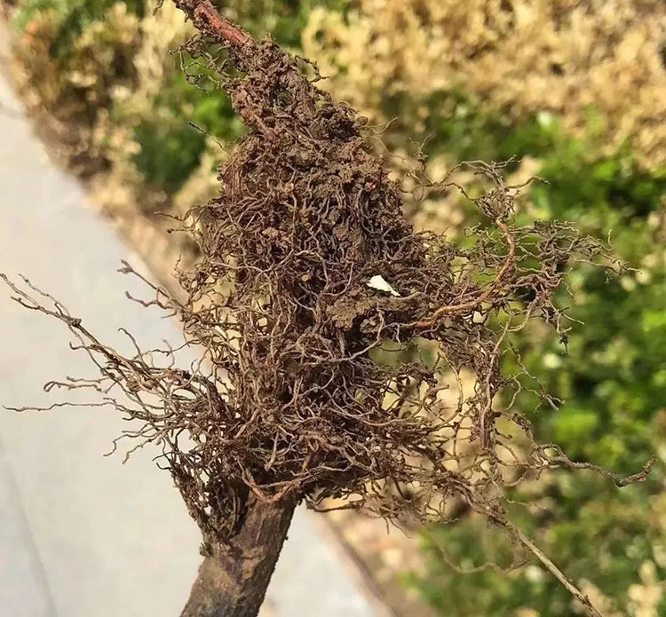 7、根腐病:一般和土壤板结、高温、湿度大有关,导致土传病害危害根系导致,最后就是绿篱整株失水萎蔫枯死。