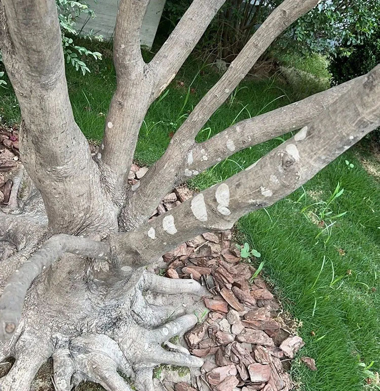 山东有客户咨询,树干上一块块白乎乎的斑,不知道是什么,在海棠和红枫树上均已发生,通过图片诊断,确定是膏药病,膏药病在山东发生较少,零星发生,一旦发现,树势一般会较弱,严重的可能诱发其它病虫害导致枝条干枯甚至整株枯死。下面咱们来介绍一下膏药病的发生和防治,以海棠、红枫为例。
