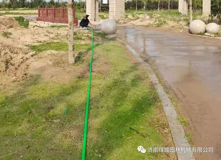 三、如何浇水最好?干旱时这两种浇水方式都存在不足,平时有降雨时,出现问题的几率还小一些,毕竟下雨还能浇透一部分土壤,降低了人工浇不透的的风险。持续干旱时,园林植物很容易因干旱出现叶片萎蔫等情况,加上病虫害危害,很多树木出现问题的几率很高。浇水的原则就是不干不浇,浇则浇透,浇透不是根部有积水,所以土壤疏松透气和板结土壤差异较大。综合下来,目前浇水最好的方式就是类似下小雨的效果,可以浇透,又能不积水。建议使用中喷带或微喷带一类的喷灌设施,比较简单使用,地埋式的投入大,所以使用中喷带或微喷带是最好的选择。使用前提是必须有水源,中喷带直接接到管道或水泵上,一根就可以浇灌二三千平方,比人工效率高,成本低,关键是浇的透彻。