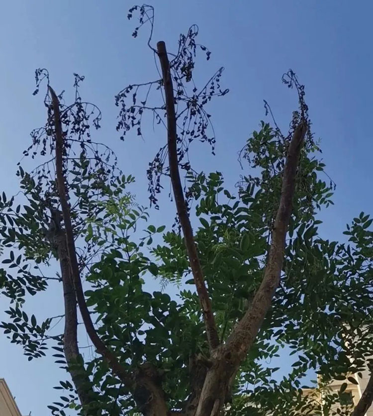 为了赶工期,高温栽树也必须进行,有的可以修剪后进行栽植,有的工地都是全冠移植,这是甲方要求,不能修剪,修剪了就得重新更换,总之条件很苛刻,工作还得做。