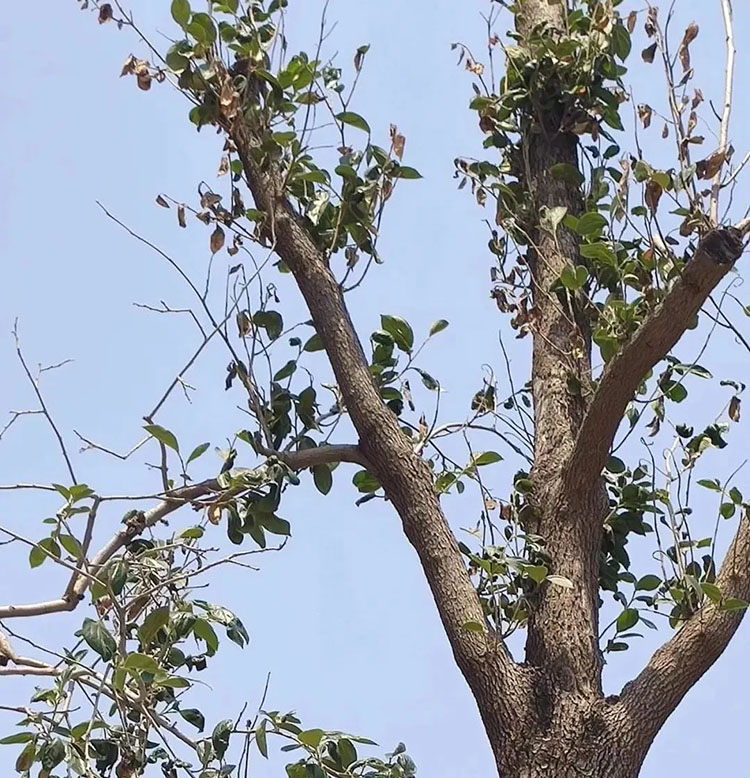 3、观察枝条是否异常,有干枯的叶片,枝条是否是活的还是也随之干枯。