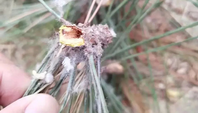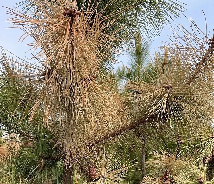 近期有客户反应,栽植的油松、黑松等出现枝条顶端干枯、针叶枯死的情况,经过现场勘查,原来是松梢螟惹的祸。松梢螟在夏季危害较为严重,如有发现顶端干枯的情况,可以掰开枝条检查是否有蛀虫危害。松梢螟什么时间危害,如何防治?今天和大家分享一下。