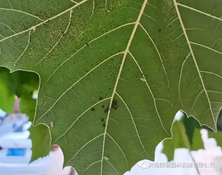七、其他虫害:美国白蛾8月中下旬到10月份还有一波危害,发现可用瑞功、一刀流、溴氰菊酯等喷雾防治。蚜虫、木虱等继续危害,可用八方尚猛、冠呀、德卡特等喷雾防治。食叶类害虫参考美国白蛾防治。