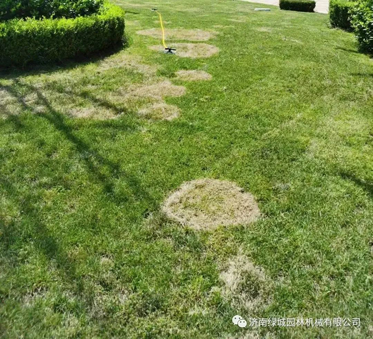 3、草坪腐霉枯萎病等病害导致,在高温高湿情况下,爆发严重,可以一夜之间导致草坪大面积发黄枯死。