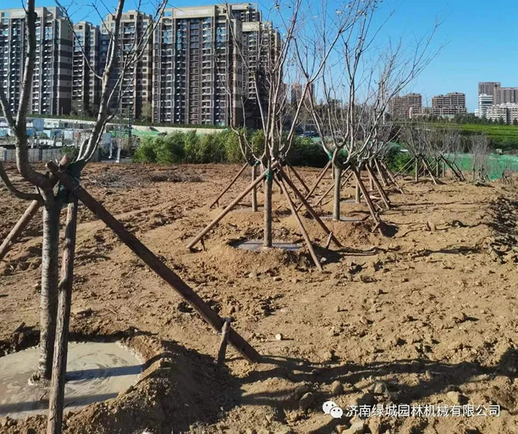 4、大树移植:3月份也是树木移栽的季节,注意几个核心点:树穴比土球大20-40厘米,深度平齐或稍高。及时运输,及时栽植,做好定根水、固定支撑、修剪工作,建议直接输液,根部使用根司令+根壮壮灌根。春季风大,一定要做好固定支撑。