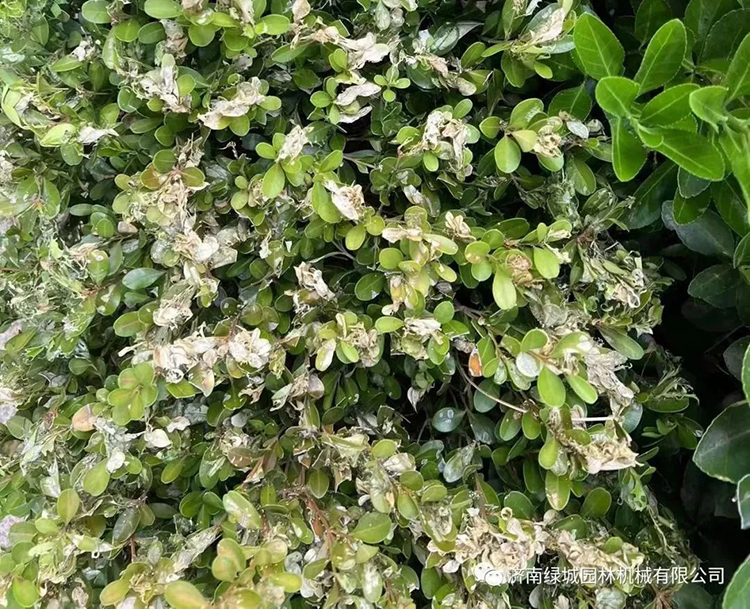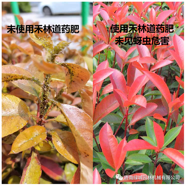 二、蚜虫:比如桃蚜、松大蚜等,蚜虫种类繁多,危害从春季3月开始一直持续到秋季。不同蚜虫危害时间不同,春季以红叶石楠、大叶黄杨等绿篱植物开始危害,5-6月份大多数蚜虫均已开始危害。叶蝉、蚜虫等均可通过根施禾林道药肥进行防治,也可喷施联苯+冠呀+光合素进行防治。