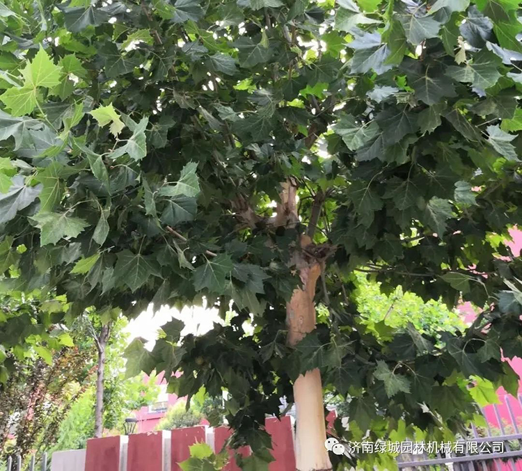 一、法桐习性:属于浅根系树种,根系主要集中在表层60公分以内,大规格法桐或栽植多年的根系可以延伸至3-5米深。法桐适宜在微酸性和中性土壤,在微碱性土壤中也可以生存,但易发生黄化现象。法桐在济南作为行道树,栽植较多,很多法桐都有几十年树龄了,但近年来,受各种因素影响,不少法桐出现树势衰弱甚至枯死等问题。