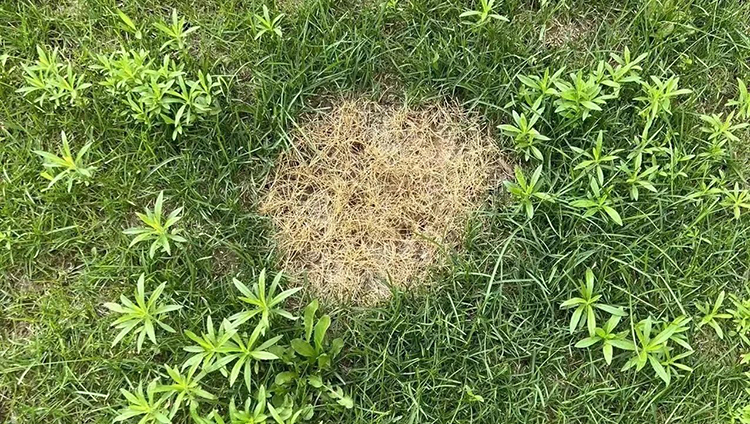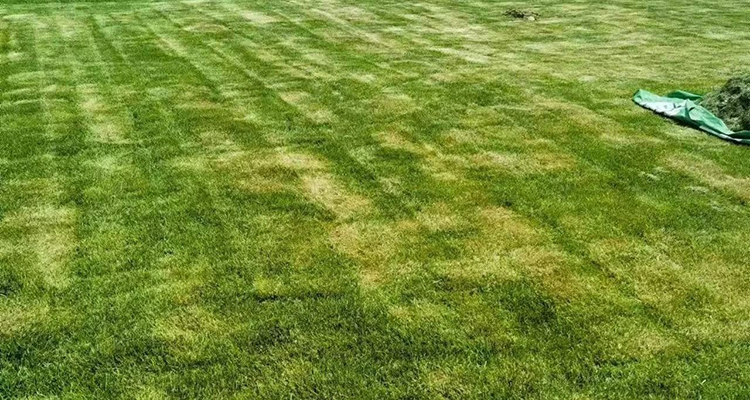 5、草坪有规则的发黄。原因:可能之前有其他物体覆盖导致的。一般形状比较规整,边缘整齐。