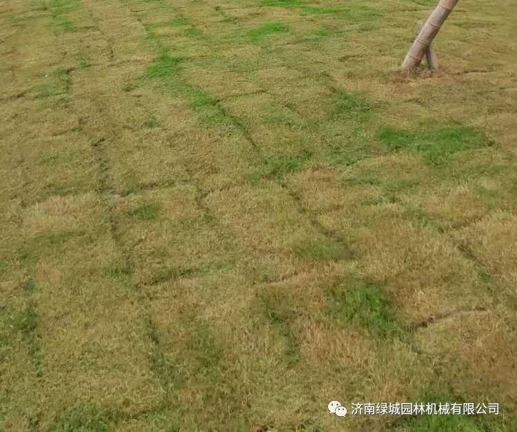 原因:大面积枯黄的原因是没有扎根导致。草坪铺上后没有压实,或者压实后养护管理不到位,导致根系迟迟没有下扎,高温天气快速出现大面积枯黄,甚至枯死。黄绿相间的草坪,一般在块和块边缘的成活了,呈现绿色,周边草坪枯黄。这个和草坪适应能力有关系。适者生存。
