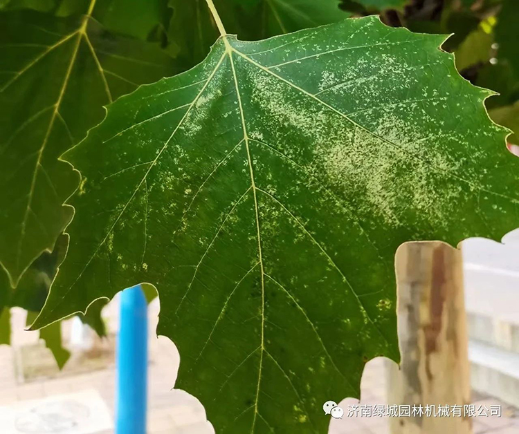 1、法桐:法桐方翅网蝽危害加重,部分法桐出现大量叶片发黄的情况,往年未防治的,情况偏重。大部分都或多或少存在其危害。8-10月随数量增加,会进一步加速法桐黄叶和提前落叶。针对小区等不方便喷药的,可使用禾林道药肥根施杀虫。也可以使用德卡特+冠呀或锤击整体喷雾防治,方翅网蝽在叶背面危害,打药一定要均匀喷雾,或者加入渗透剂,提高防治效果。
