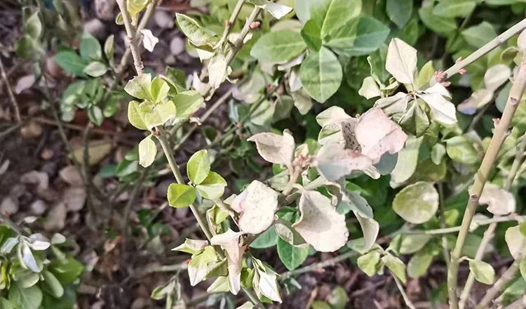 3、大叶黄杨:出现枝枯或整株枯死情况,较为普遍。主要是枝枯病、枯萎病等病害导致。喷施透翠干腐病套装,浇灌奇根或浩苗,根部消毒杀菌处理。及时拔掉枯死植株,集中销毁。另外疮痂病、炭疽病、褐斑病、白粉病等都已开始发生,及时喷施扫斑、合碧净、叶琦等。