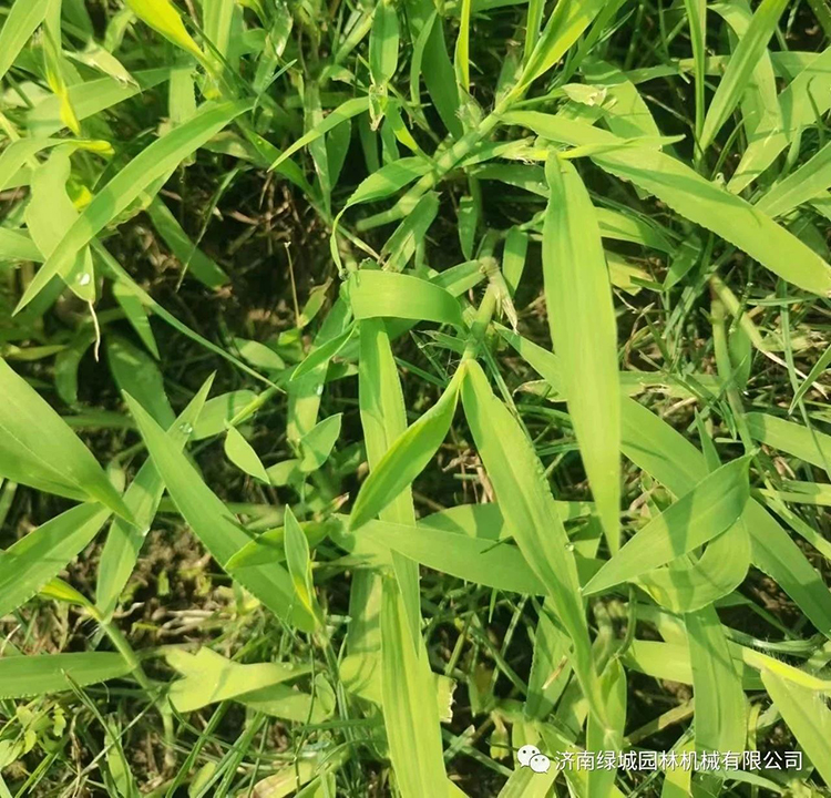 6、草坪杂草:部分草坪基本都被马唐、狗尾草、莎草等覆盖。草坪杂草多,关键是草坪长势弱,导致不能使用除草剂,后期草坪退化,稀疏。使用除草剂就可能会出现药害。所以一定提前做好除草和养护规划。长势正常的可用胜坪、阔勤、悍马、坪莎等进行防除。建议小面积试验安全后再大面积使用。严格按照用量使用。