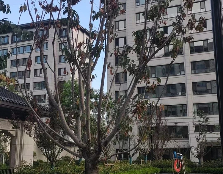 4、大叶黄杨枝枯病:从6月开始发生,7月多地出现,8月会进一步加重,呈现发病快速,危害严重。枝叶失水青枯,逐渐叶片干枯,枝条皱缩。严重时整枝或整株枯死。