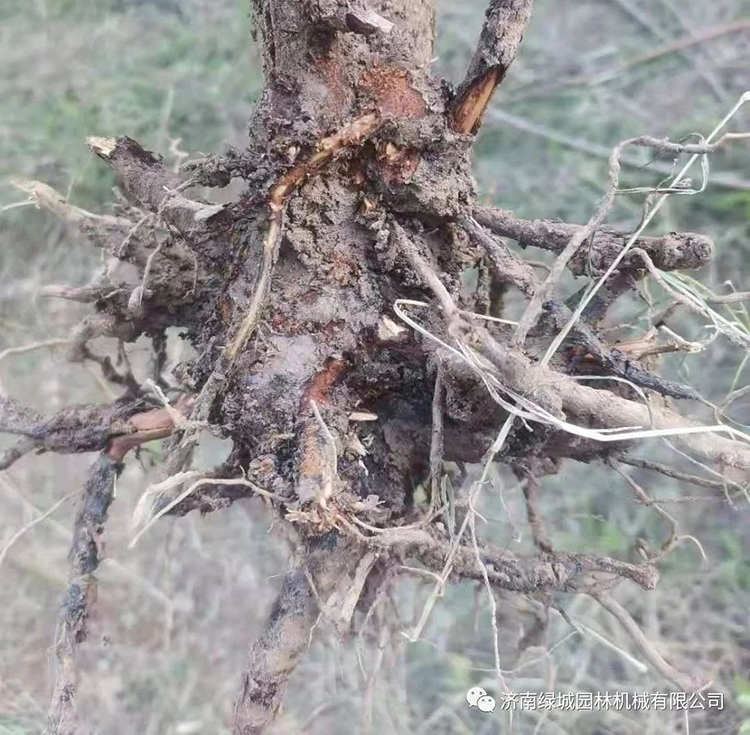 5、根腐病:主要表现为根部腐烂,有霉味。和浇水过多、降雨多、土壤透气差有关。雨水多,土壤湿度大,新栽苗木发生根腐较多,注意预防。使用奇根、地彩、浩苗等防治。