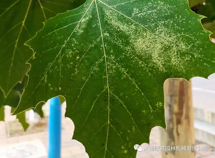3、悬铃木方翅网蝽:7月份温、湿度均较适宜,很适合悬铃木方翅网蝽的繁殖,根据其发生规律,7~8月是其繁殖盛期,有加重危害的趋势。目前在部分区域危害明显,导致叶片发黄。