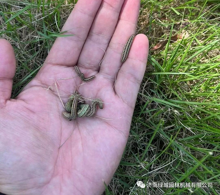 三、病虫害防治:本月草坪褐斑病、腐霉枯萎病、斑枯病、锈病、蛴螬、夜蛾等依然发生严重。及时检查草坪,一旦发现及时用药很关键。特别是空气湿度大或降雨后,一定注意观察草坪是否有小块发黄情况,建议每半个月喷施一次杀菌剂比如蓝盾、绿欣等预防病害。发现初期及时喷雾光合素+地彩+叶琦、先瑞、合碧净等,根部浇灌一次根壮壮+浩苗。草坪虫害会导致短时间大面积发黄,通过检查草坪土壤和根茎部,确认有虫后,及时使用三彪、地猛、展冠等。