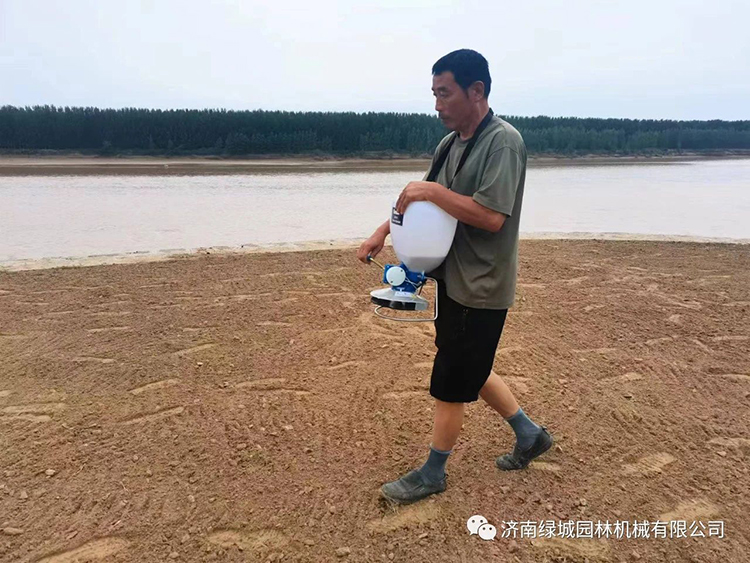 2、选择人工使用播种机播撒:同样的先测出一定面积的地和种子,让一个人从不同方向撒两遍,掌握好行走速度和转速,看好种子撒的宽幅,这样播撒均匀度要大幅度提高。
