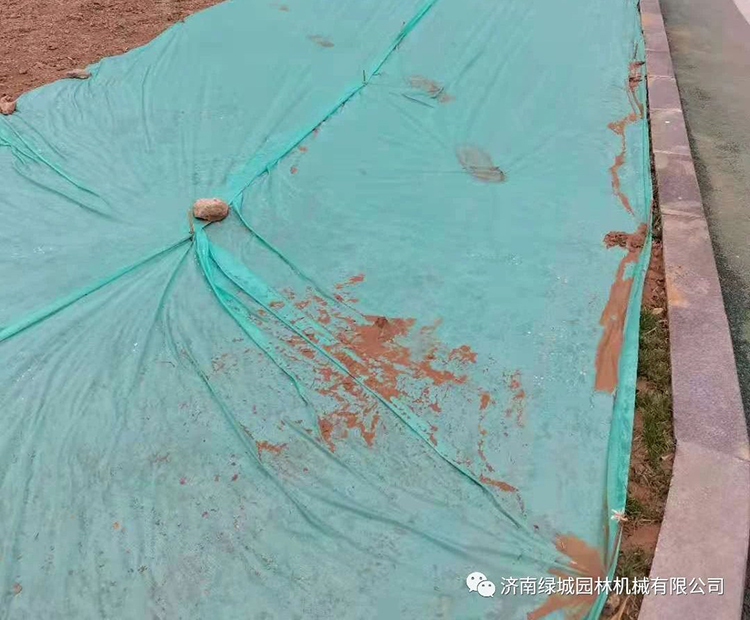 2、关于覆盖无纺布和草苫子:草苫子更好一些,但成本比无纺布高出2-3倍。无纺布在平地上使用效果也很好,但在斜坡上,会出现渗透性差的问题,和无纺布表面光滑度以及径流有关,此时浇水建议重点喷施斜坡中上部,要有一定压力的水流,这样避免形成表面径流。