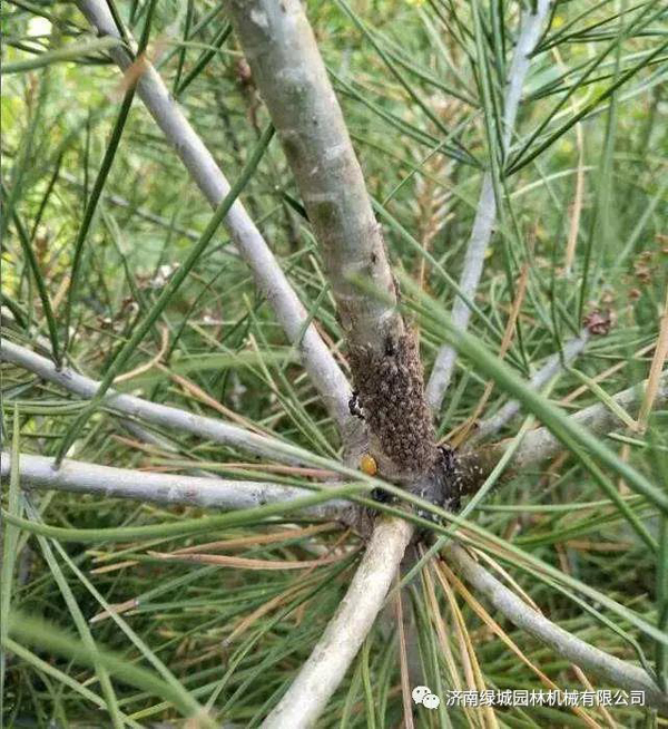 5、病虫害防治:常见病虫害主要有立枯病、松针锈病、落针病、松大蚜、松梢螟、小蠹虫、天牛等。